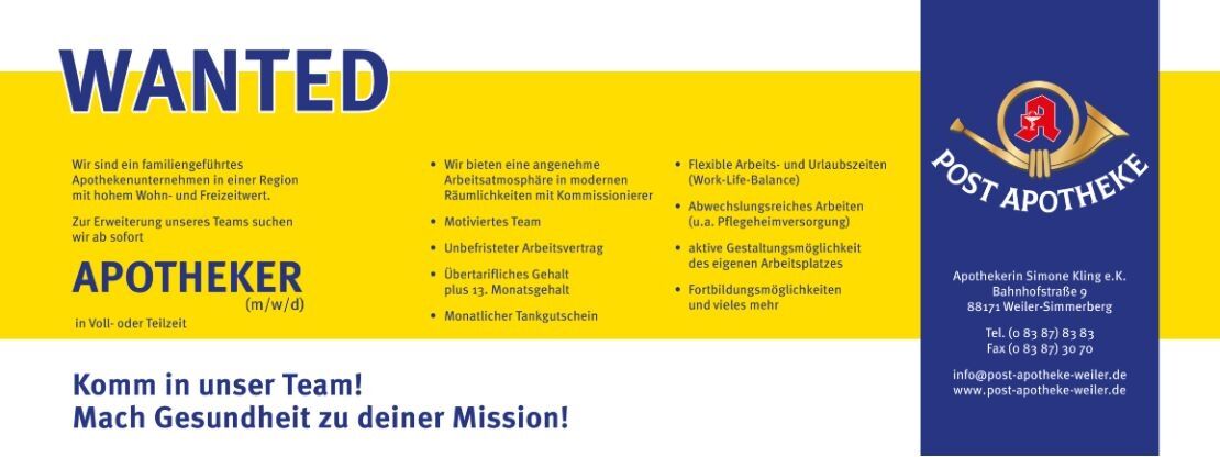 Herzlich willkommen in der Post-Apotheke in Weiler-Simmerberg